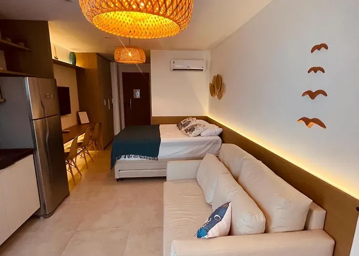 TamandaréHospede-Se Com Estilo Em Carneiros - Flat Com JacuzziアパートメントはTamandaréに位置し、プライア デ タマンダレーから4.1kmです。スチームルーム、スチームルーム とサウナを提供しています。 アパートから徒歩で25分のところにCapela de São Beneditoがあります。